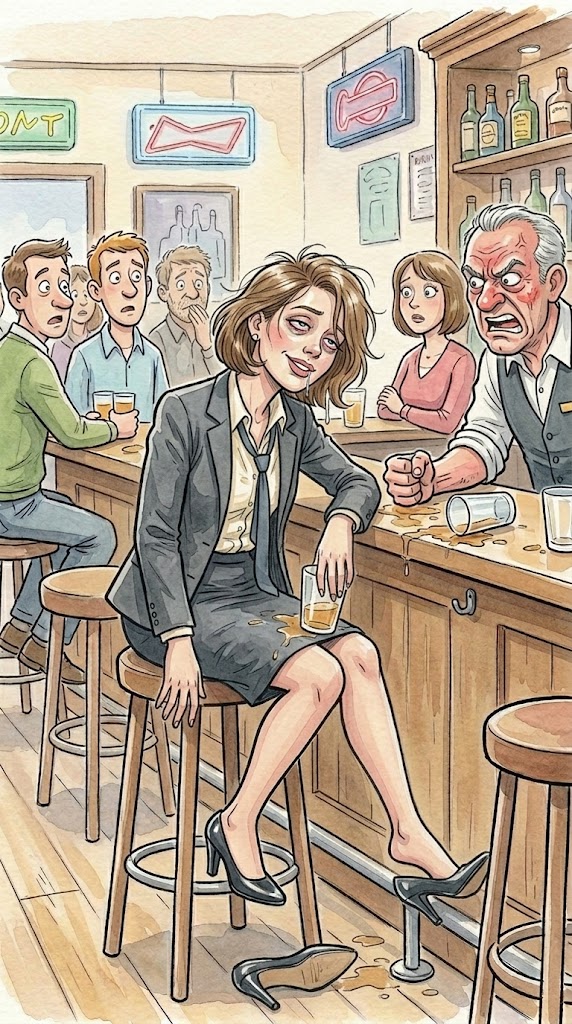 Despite the bartender's reaction, he made her another drink and placed it in front of her. A few minutes later, she beckoned him over again for another "marhini" for her heartburn.